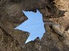 Blue acrylic paint covered platan, maple-tree and similar leaves collected in Paris. Left on the soil scattered around the city of Yangon on 14 & 15 december 2004. |