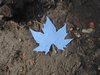 Blue acrylic paint covered platan, maple-tree and similar leaves collected in Paris. Left on the soil scattered around Dhaka city. |